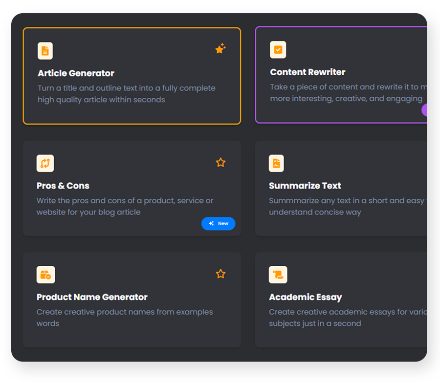 از بین مجموعهای گسترده از ابزارهای هوش مصنوعی انتخاب کنید تا آگهیهای رسانههای اجتماعی، بخشهای قهری، مقالات و مقالات وبلاگ و غیره بنویسید...